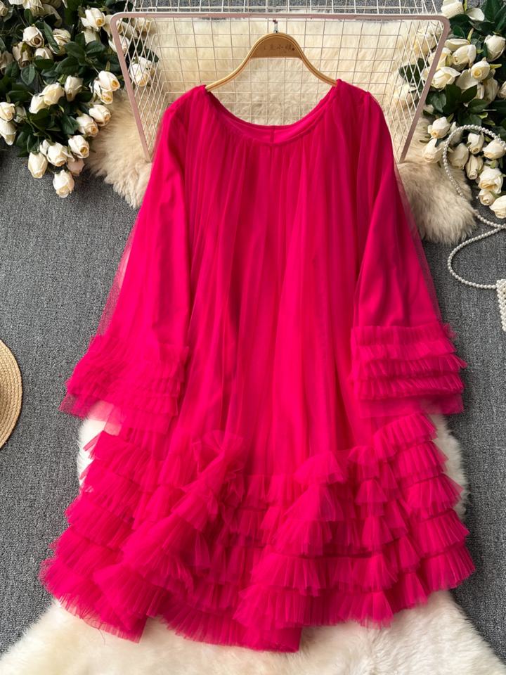 Boutique Wholesale 2025 Spring New Fashionable Retro Palace Style Loose and Slimming Mesh Ruffle Women's Dress