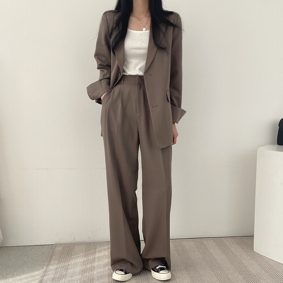 Set Donna Primavera 2026 Stile Coreano Chic: Giacca con Risvolto e Due Bottoni, Pantaloni a Vita Alta con Gamba Larga