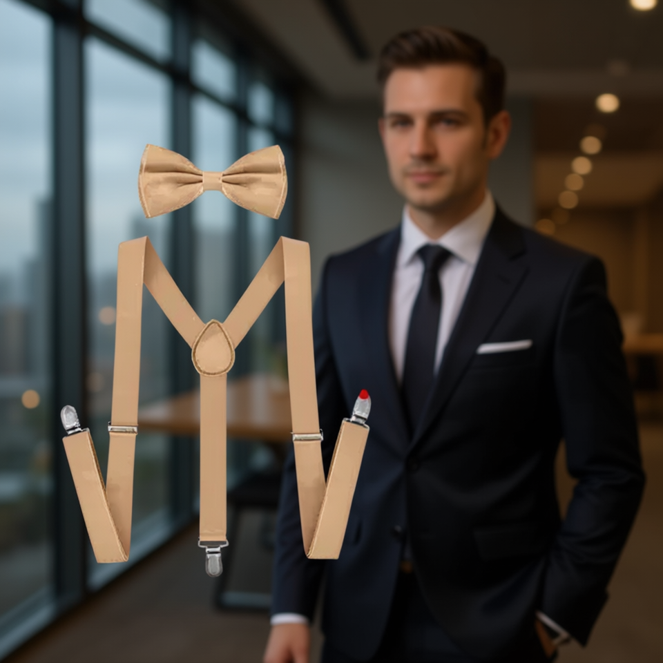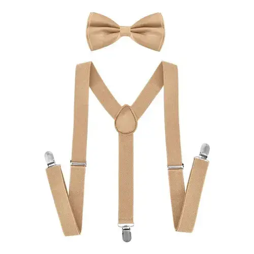 Set Papillon e Bretelle in Poliestere Tinta Unita, Regolabile, Pre-Annodato, per Adulti, Abbigliamento Casual