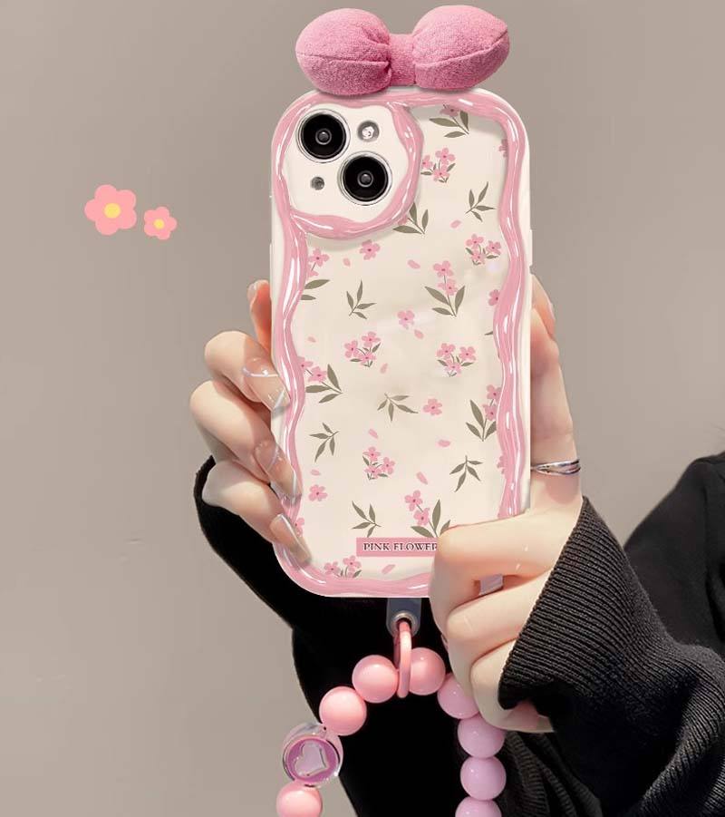 Bowknot Tulip Flower Printing With Bead Bracelet TPU Mobile Phone Cover Case for Iphone 6 7 8 X Xr XS 11 12 13 14 15 16 Pro Max