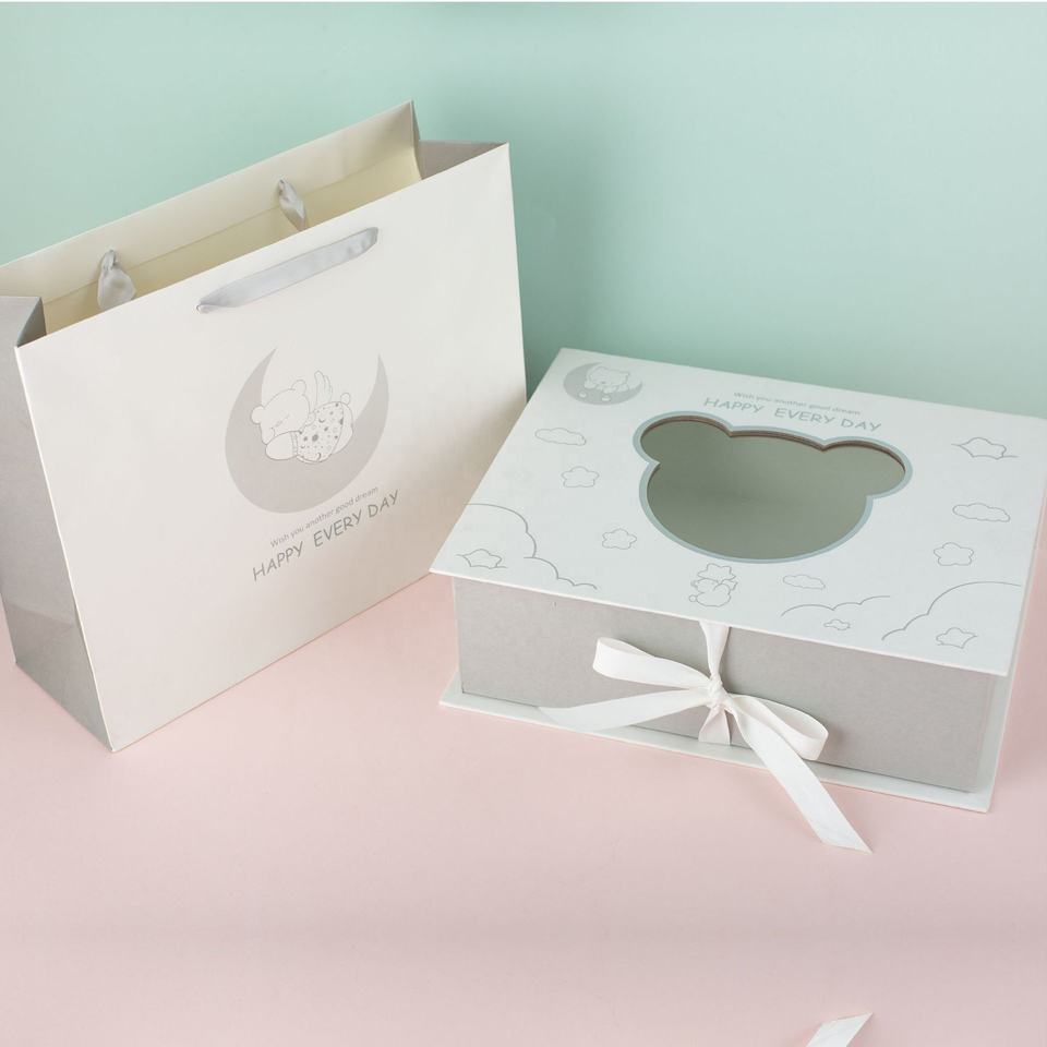 Scatole Regalo Pieghevoli Magnetiche Personalizzate con Stampa, Orsetto Buonanotte per Neonati, con Finestra