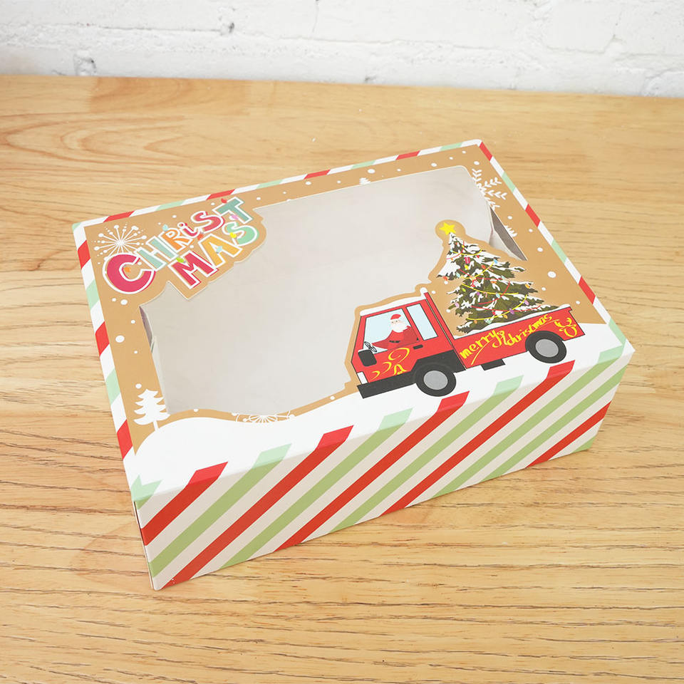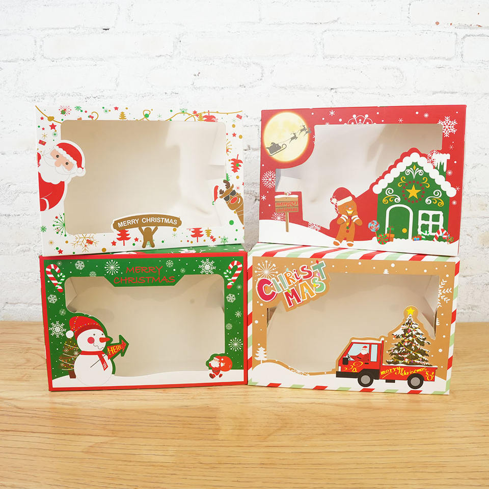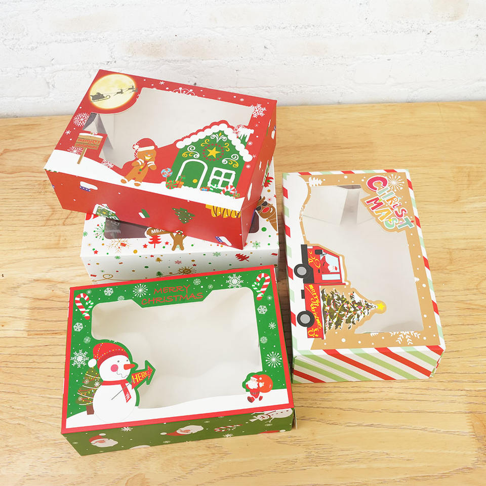 Scatola di stampa pieghevole festa di natale biscotti biscotti caramelle cioccolato cartone da imballaggio scatole di carta con finestra in PVC