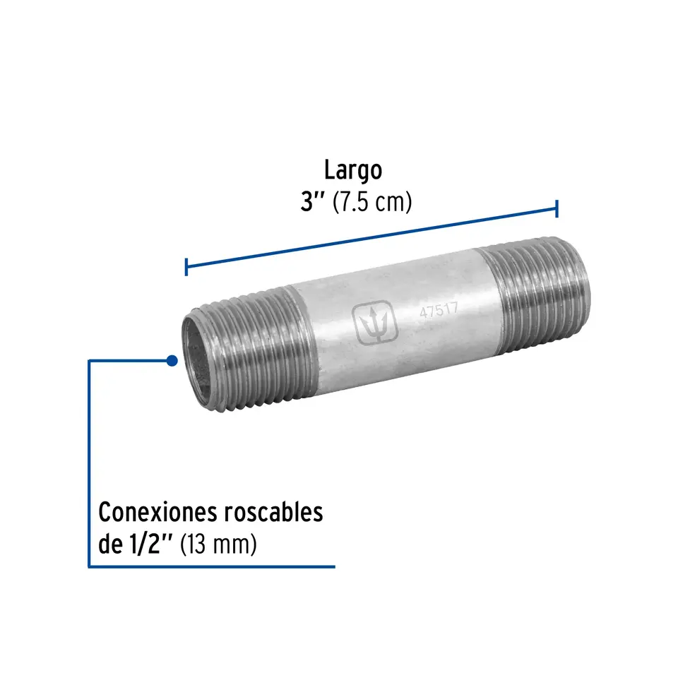 Box of 10 Units 1/2' X 3' Galvanized Steel Nipple Foset Pipe Fittings