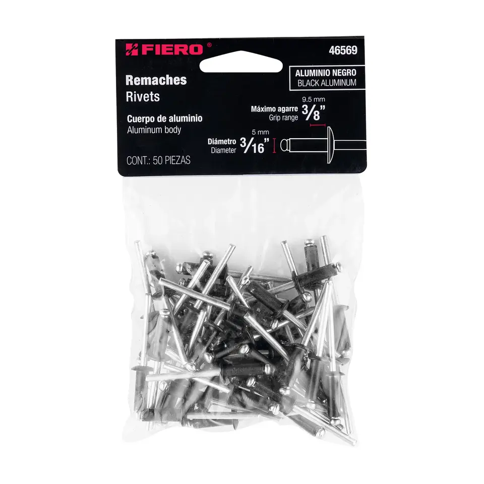 Box with 10 units Bag with 50 rivets 3/16'x3/8' black aluminum, wing 3/8'