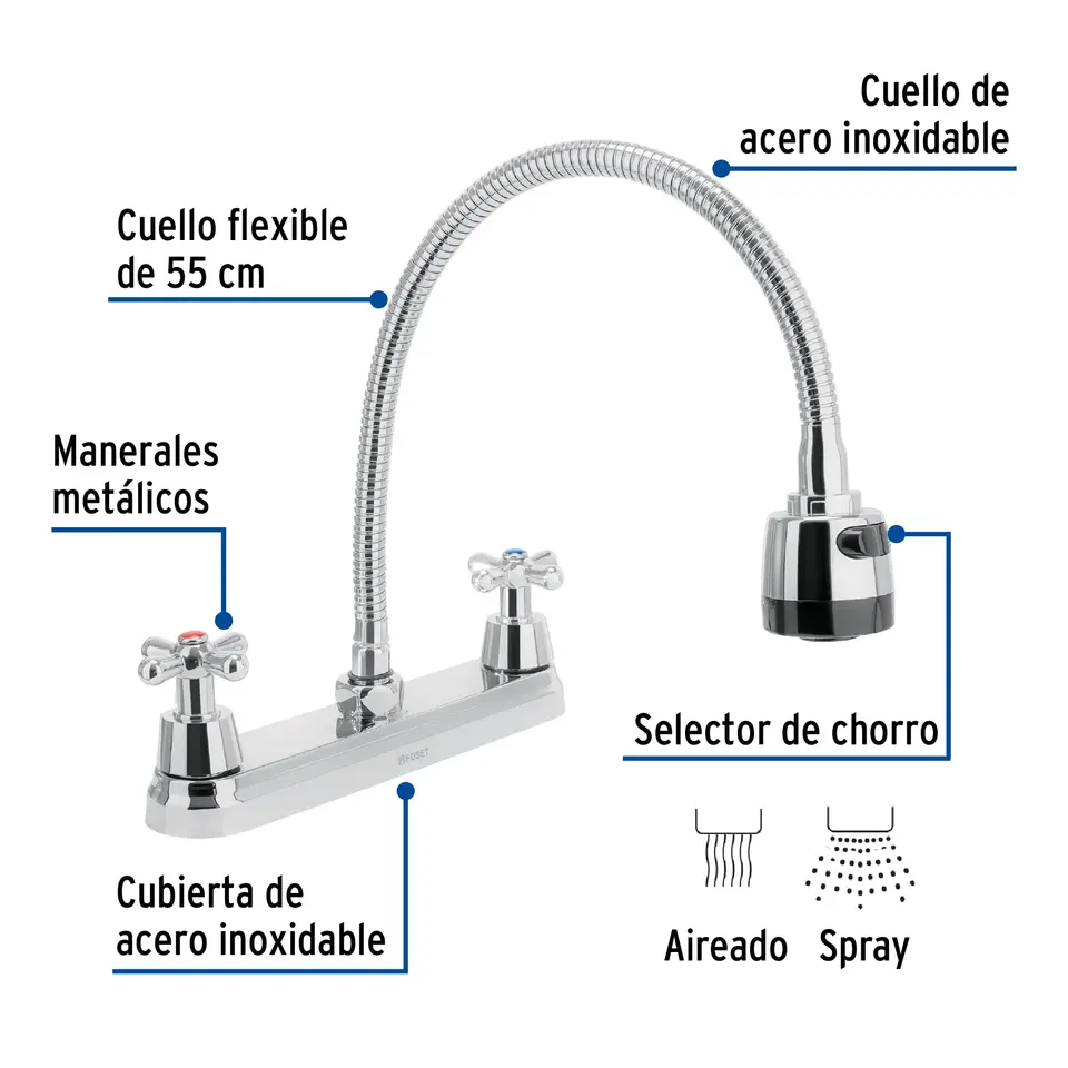 Box with 2 units 8' chrome sink mixer, flexible neck, crosshead, AQUA