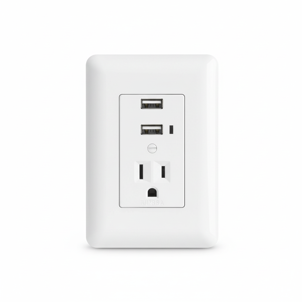 Scatola con 3 unità di contatto con messa a terra + 2 porte USB, bianco, linea italiana