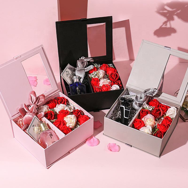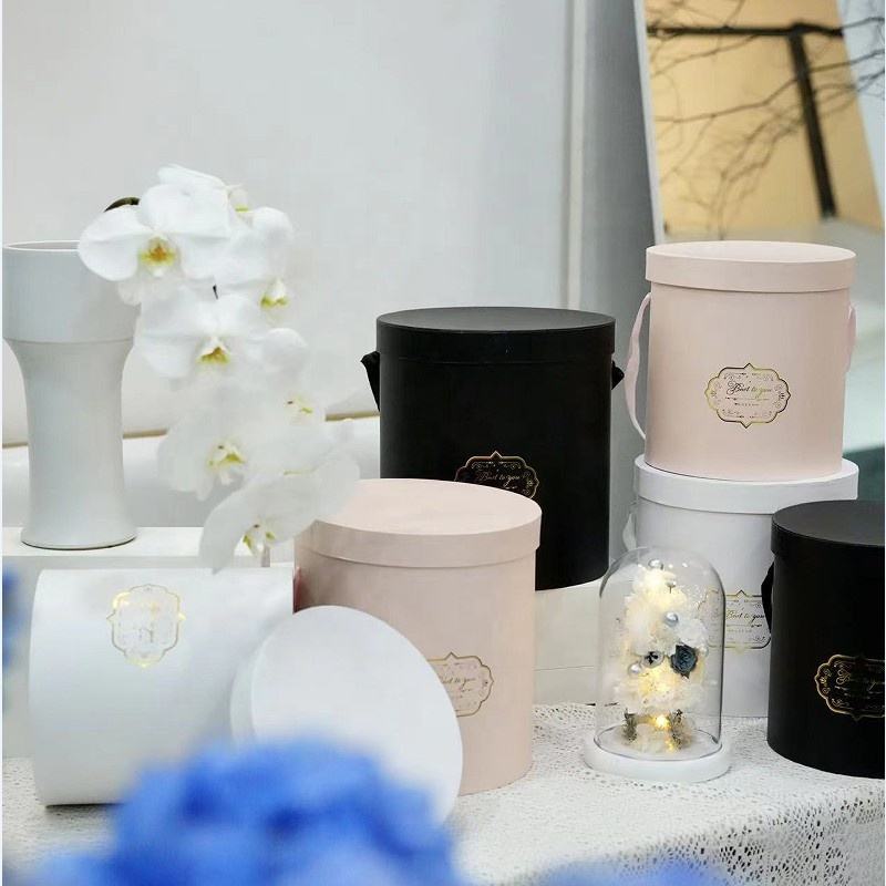 Scatole per Fiori di Lusso Scatola Rotonda in Cartone Scamosciato Rosa Scatole in Velluto per Rose