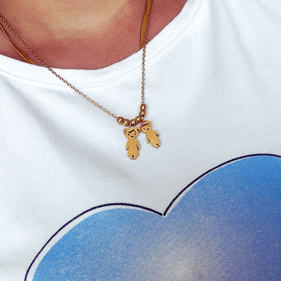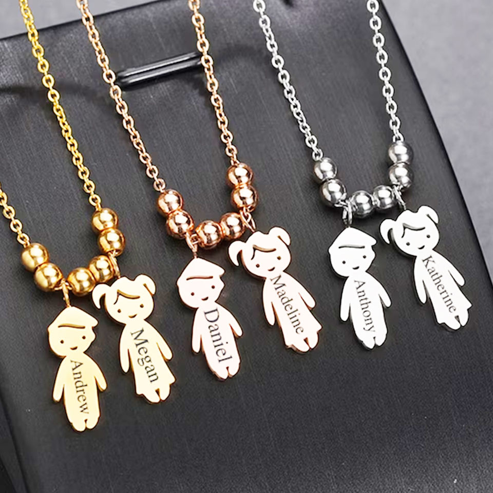 Boy and Girl Pendant Collier Personnalize Pour Maman 18k Laminated Gold Beads Mothers Day Gifts 2024 Customize Name Necklace
