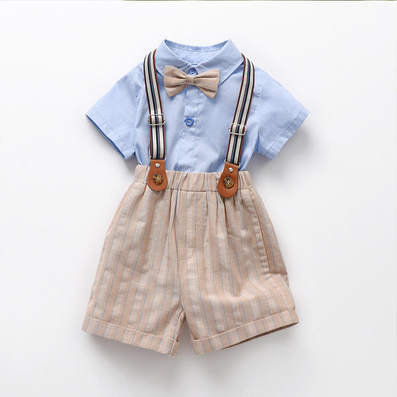 Completo estivo da ragazzo con bretelle a maniche corte Casual monopetto elegante e completo da due pezzi