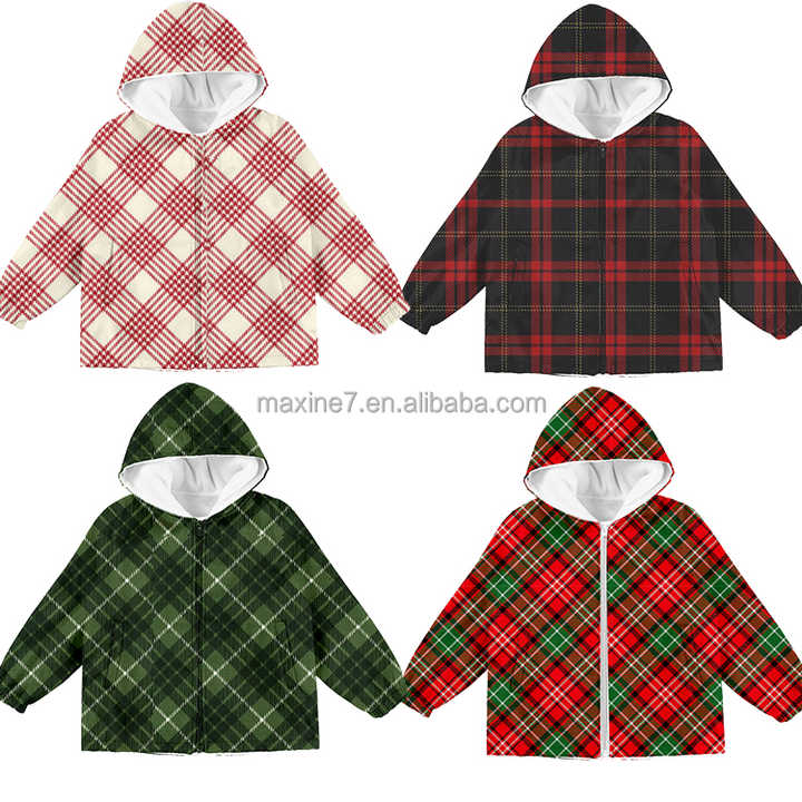 Boy's Thick and Warm Winter Coat with Christmas Plaid Pattern Nylon Waterproof Boy's Jacket with Hood