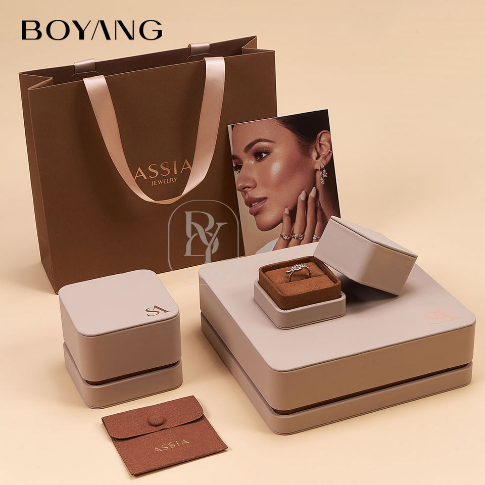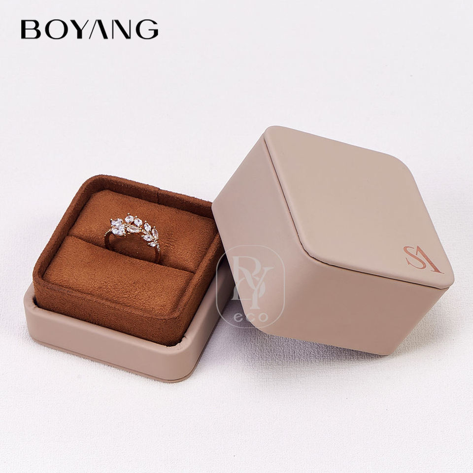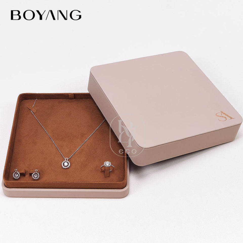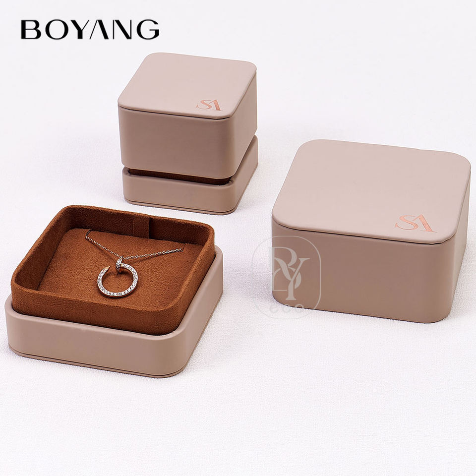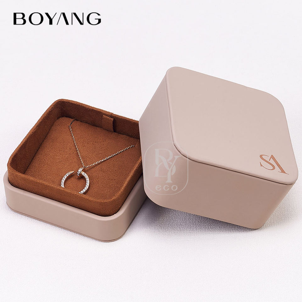 Boyang Custom New Design Lid and Base Ring Necklace Gift Packaging Luxury Leather Jewelry Box Set
