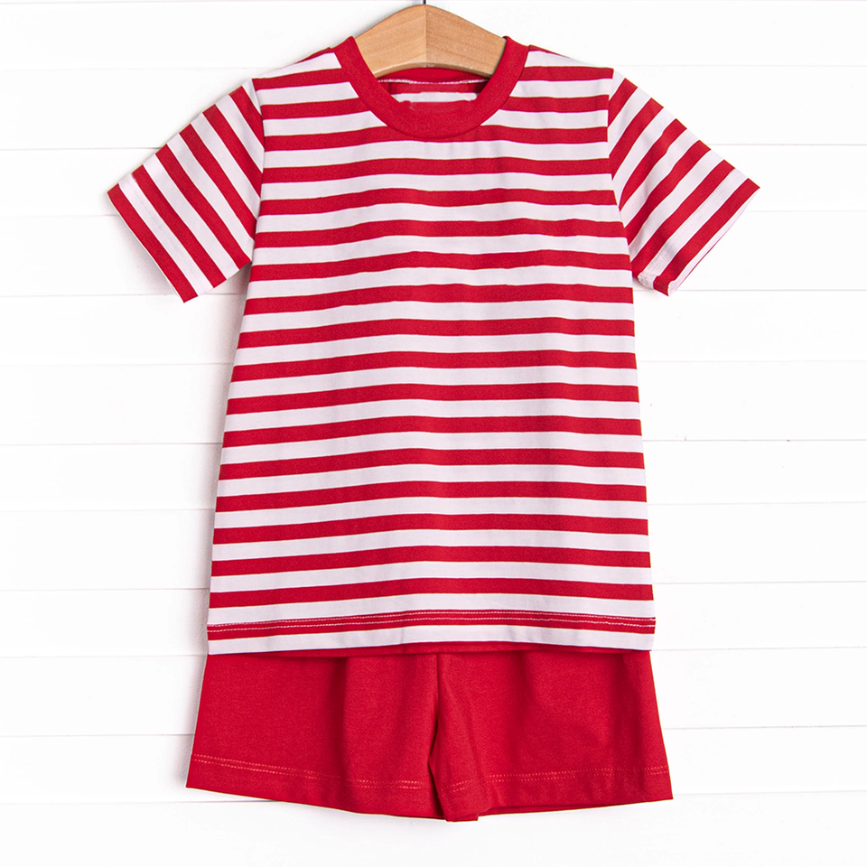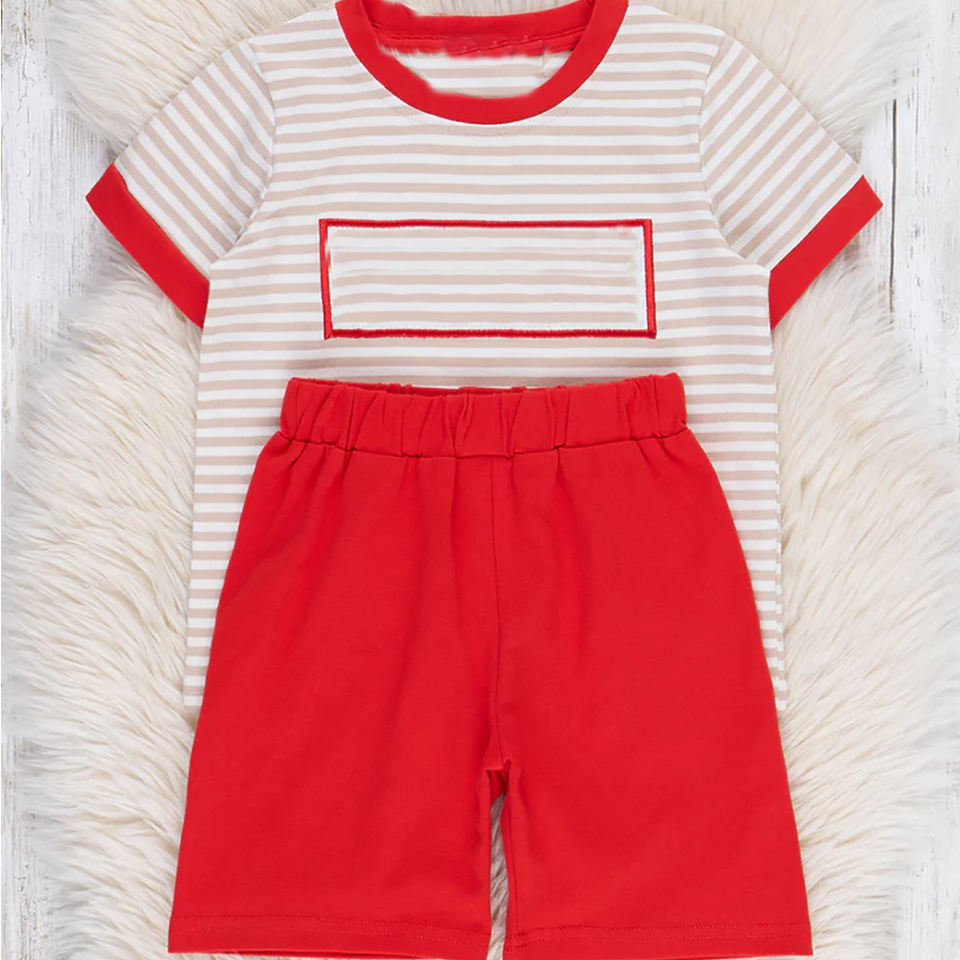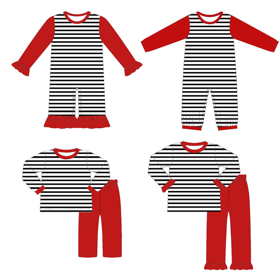 Vestiti abbinati per ragazzi Set corto rosso per la personalizzazione del ragazzino vestito di cotone a righe per bambini