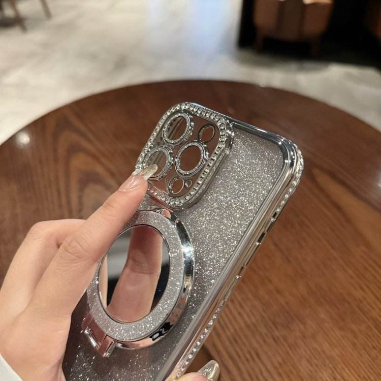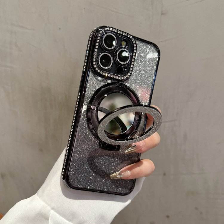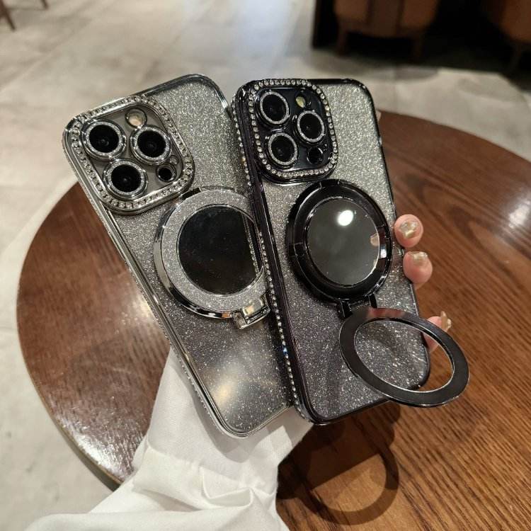 Bracket Magnetic Electroplated Phone Case for iPhone 16 15 14 13 12 Pro Max 11 Glitter Mirror Phone Cover With Holder