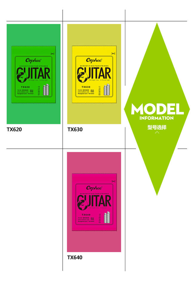 Brand New 2020 Orphee Acoustic Guitar Strings TX620 TX630 TX640 Optional Phosphorus Copper Guitar Strings Set of 6 Strings
