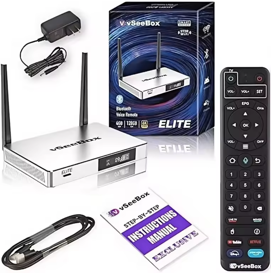 Brand New VSeeBox Elites 2025 TV Box Android 10 8K for HD 4GB RAM 128GB ROM Portable 3-Year Warranty Upgraded Voice Remote