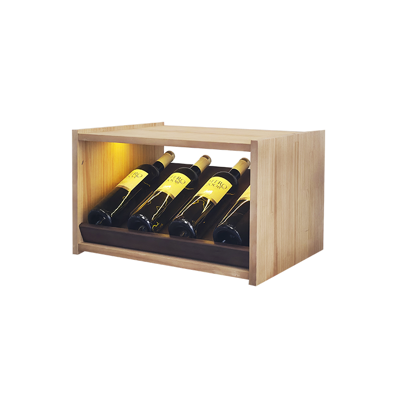 Portabottiglie 4 bottiglie di marca con illuminazione a LED piccolo pannello in rovere espositore con basi di supporto per la conservazione del vino per la casa