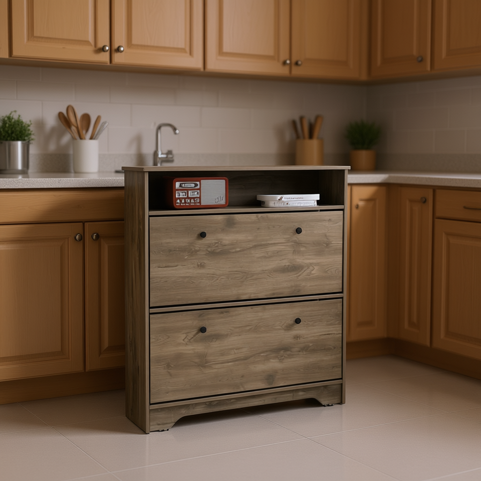 Brandford Two Shelf Shoe Rack Modern Design Freestanding Kitchen Storage 10in Height