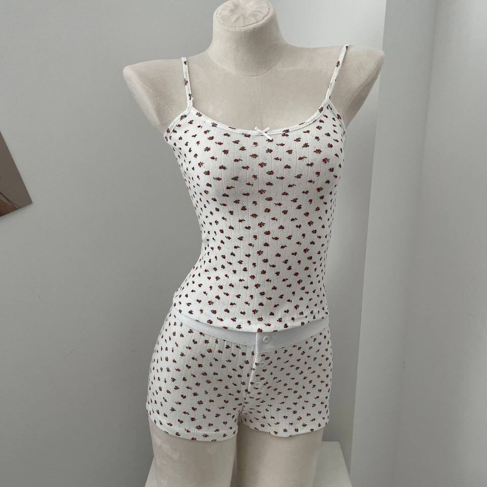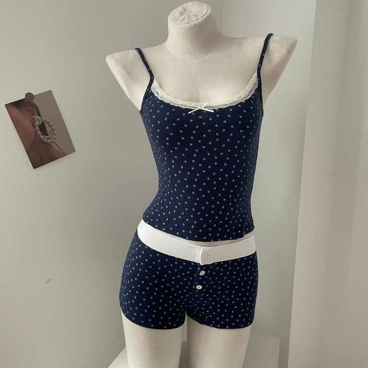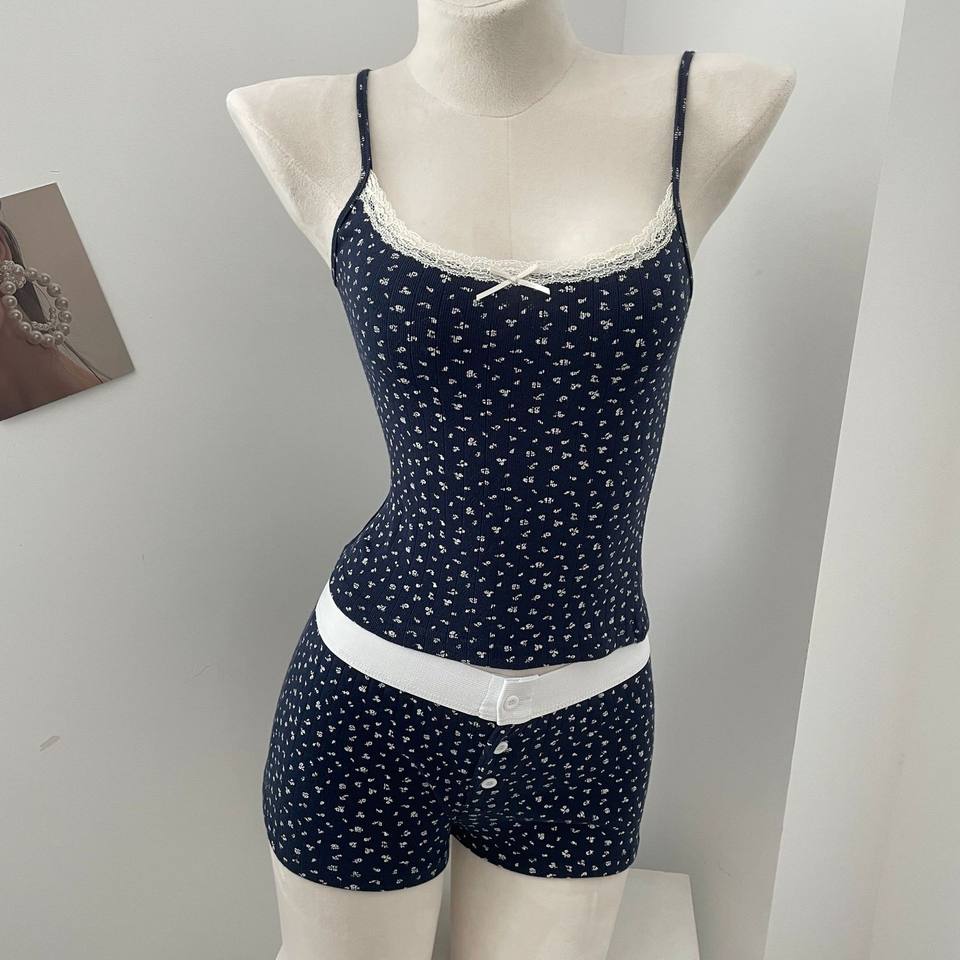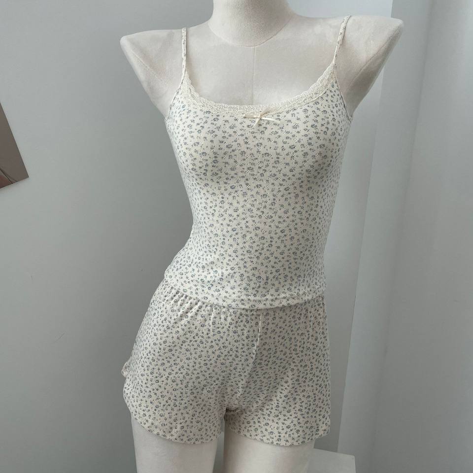 Brandy BM Floral Two-Piece Loungewear Pajamas Set 100%cotton Camisole Vest Elastic Waist Hot Pants tank Top for Women's Clothing