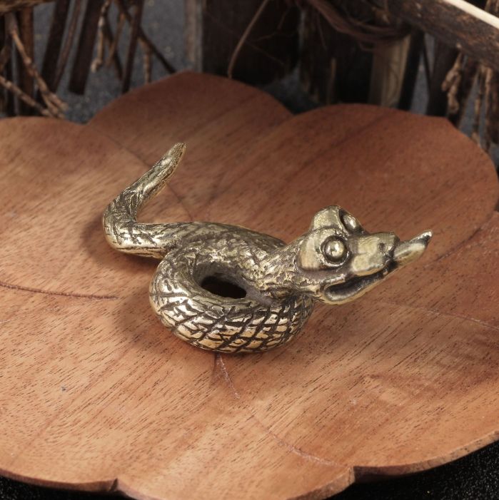 Artigianato in ottone statua del serpente di pitone ornamenti in bronzo massiccio intaglio antico antico.