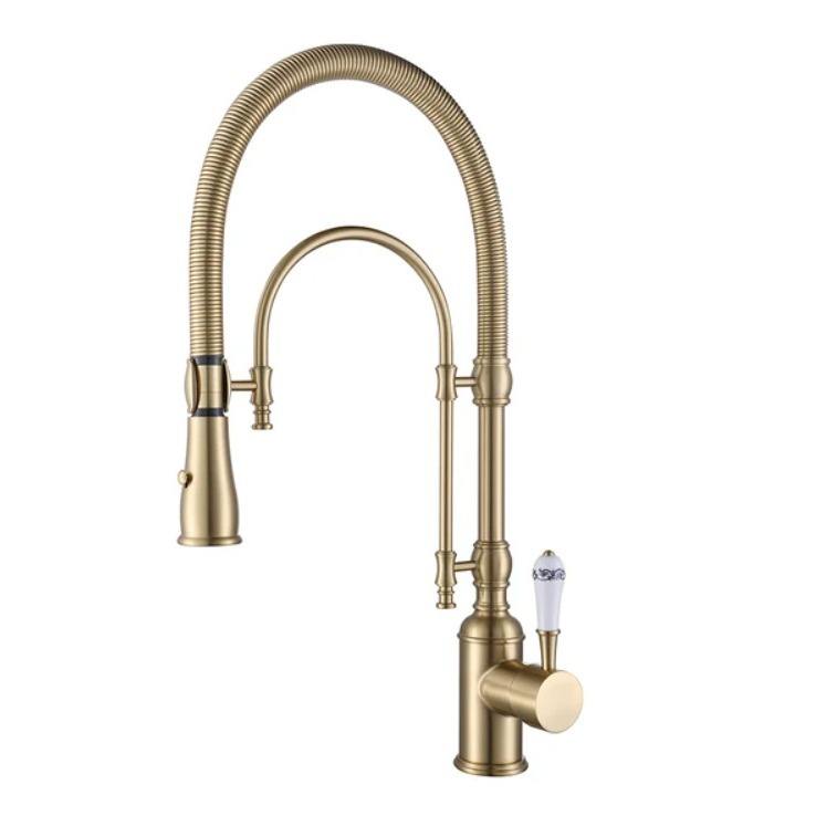 Brass Kitchen Three Way Faucet Gold Black Spring Sink Vegetable Washing Basin Cold and Hot Faucet Shower Head