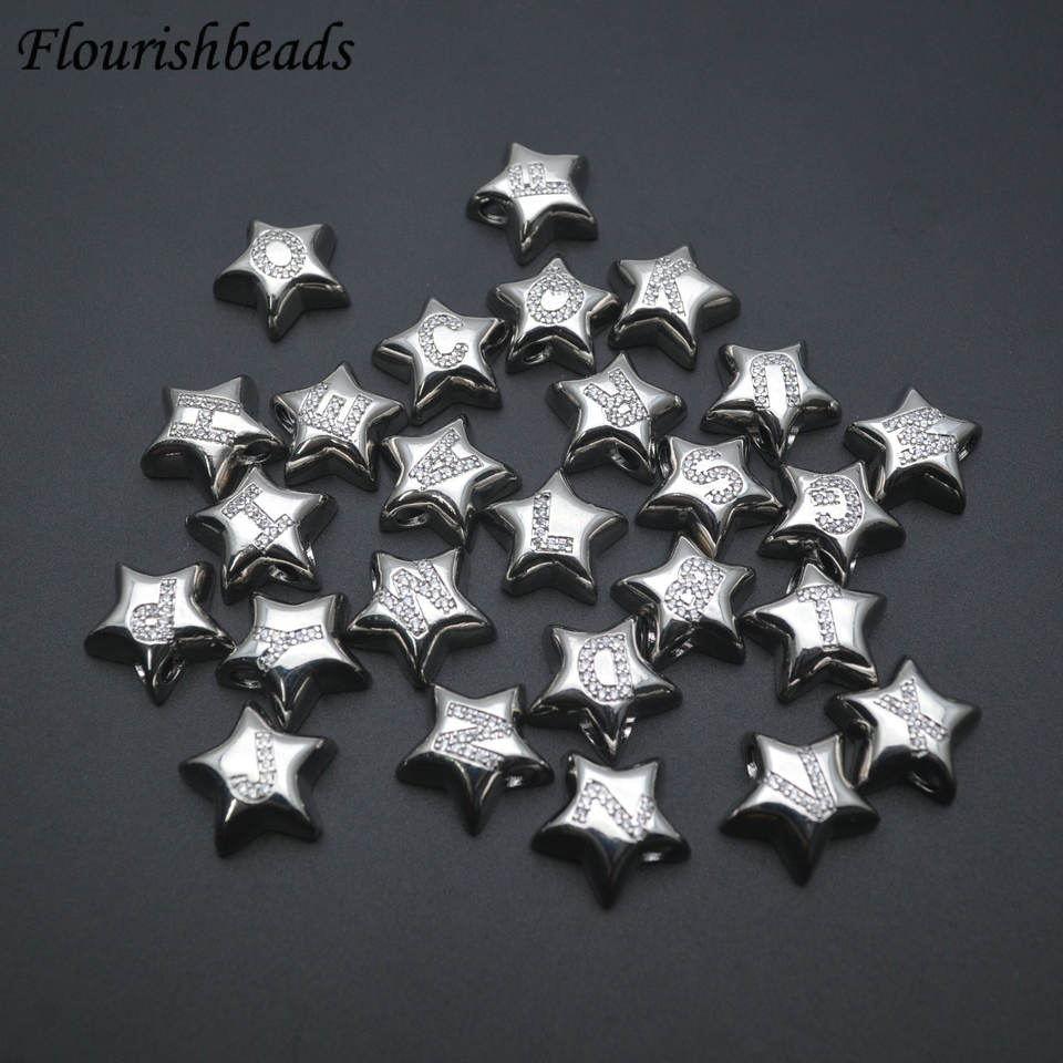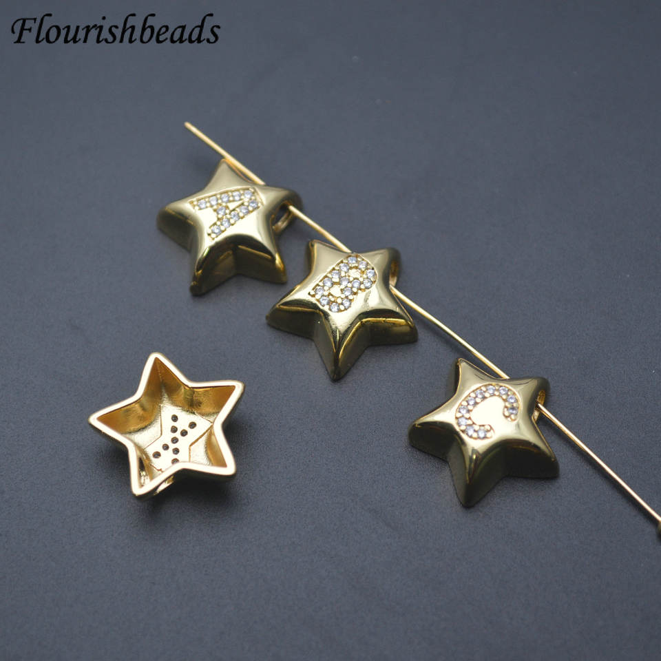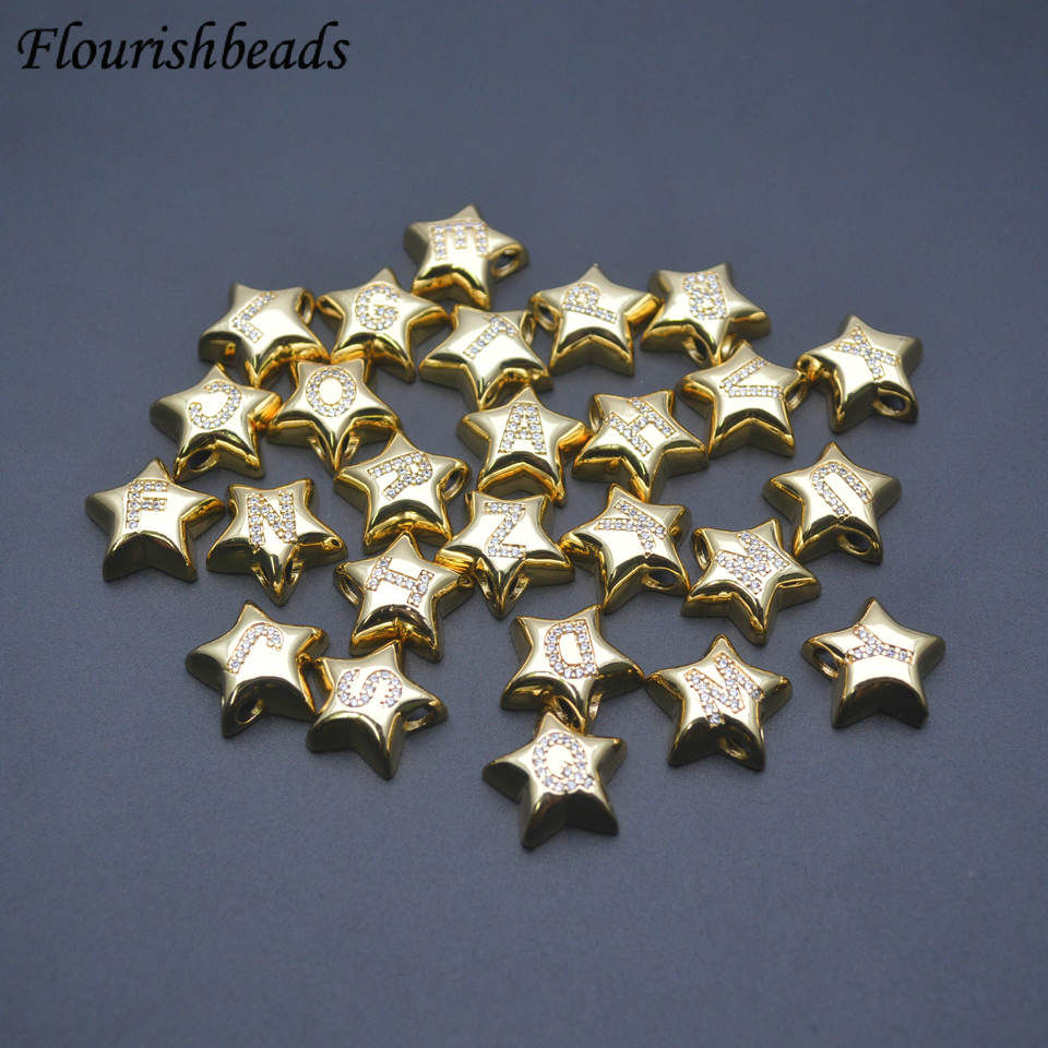 Metallo ottone a forma di stella CZ pavimentato 26 ventisei lettere distanziatore perline all'ingrosso