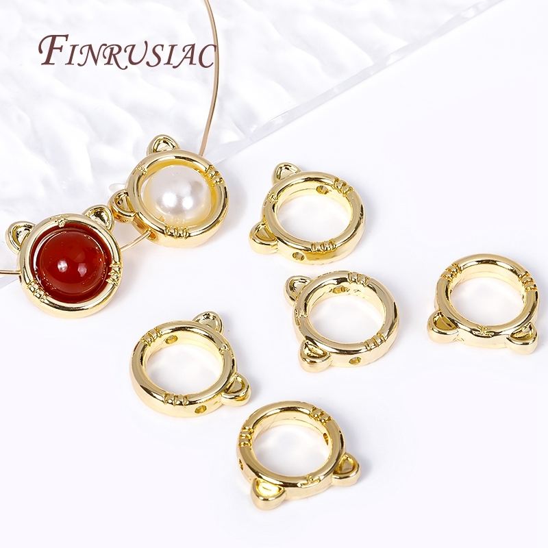 Brass Metal Through Hole Bead Frame Circle 18K Gold Plated Cat/Rabbit Shape Frame for Beads Spacer Connectors DIY Jewelry Making
