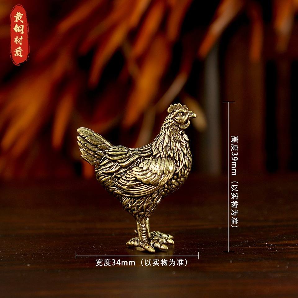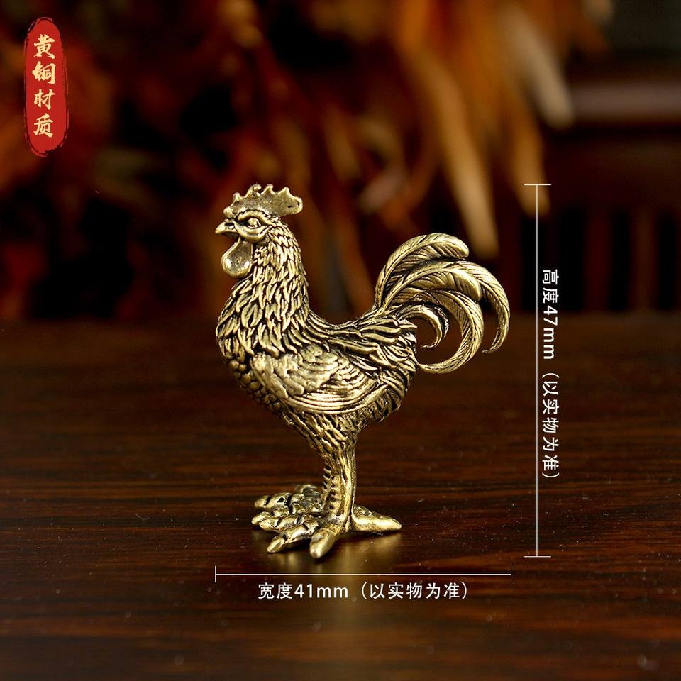 Brass Rooster Statue - Copper Roaring Rooster Figurine, Traditional Chinese Zodiac & Tea Pet Statue Suitable for Home Decor