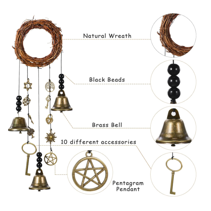 Brass Witch Bells Protection Door Hangers Witch Wind Chimes Wreath Handmade Hanging Witch Bells