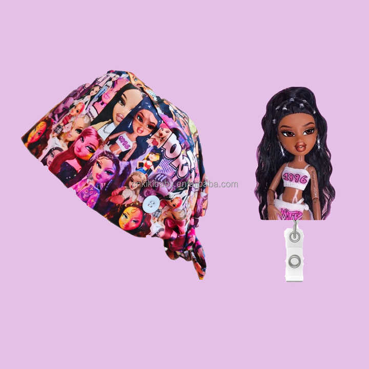Set di Cuffie Chirurgiche Unisex con Stampa Bratzs Doll, Fodera in Raso, Chiusura con Laccio e Porta Badge Abbinato, Vendita all'Ingrosso
