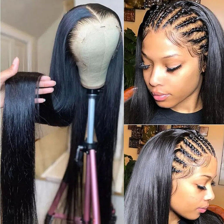 Parrucche brasiliane senza colla in pizzo pieno HD lacci trasparenti in pizzo naturale nero parrucche intrecciate per capelli umani per donne nere