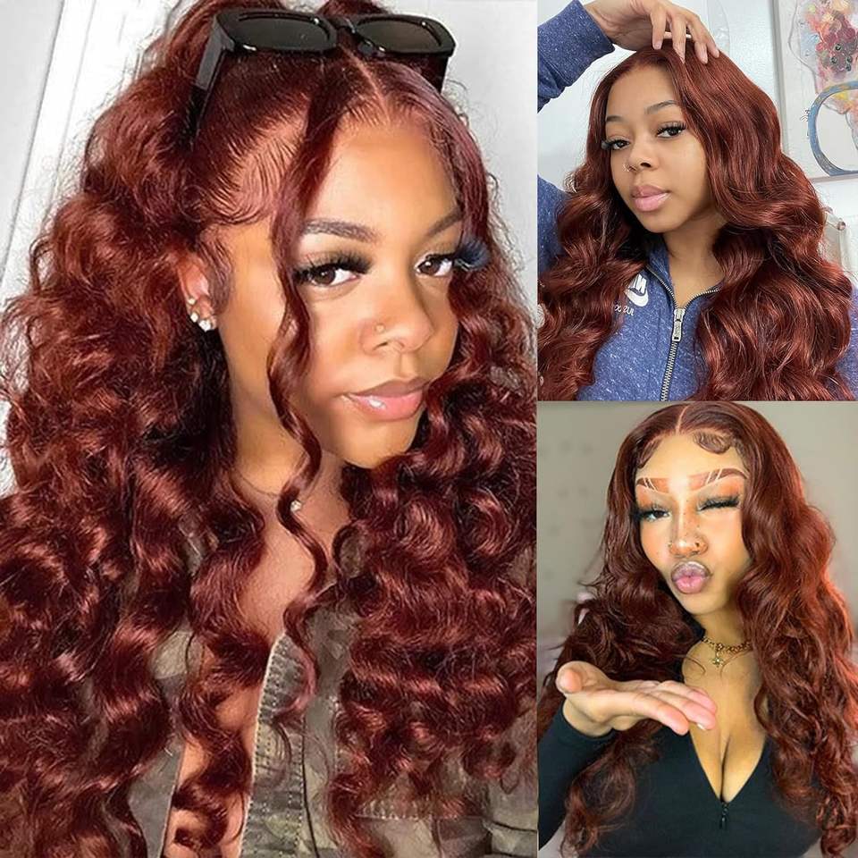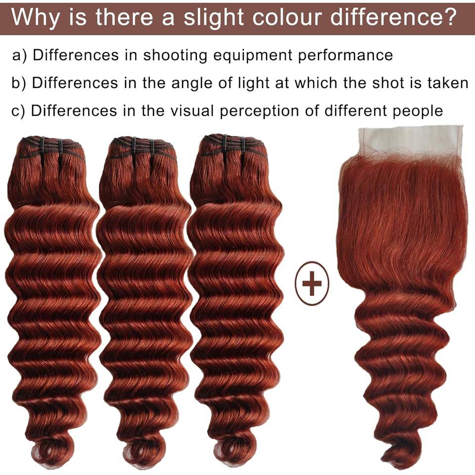 Fasci di capelli brasiliani con chiusura in pizzo bruno-rosso ramato marrone sciolto onda profonda 3 fasci e capelli umani