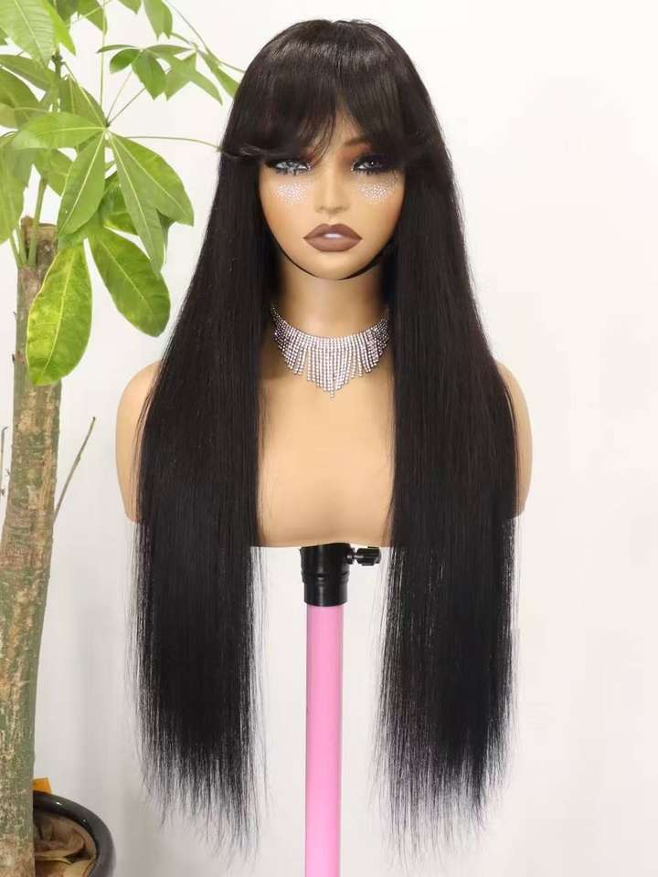Parrucca brasiliana capelli umani-4x4 pizzo anteriore dritto con frangia colore naturale capelli vergini Remy