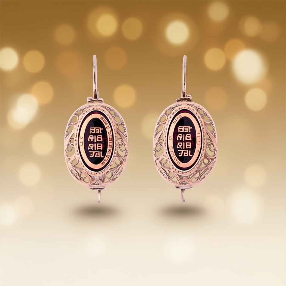 Brazillian Rose Gold Plated Drop Earrings Vintage Zinc Alloy Bezel Setting Women's Fashion Jewelry Oval Design Red Inlay