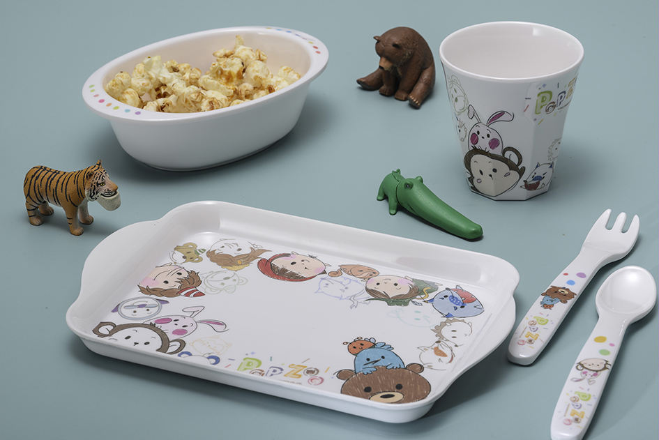 Breakfast Dinner Nursery Serving Children Childrenware Melamine Colorful Fork and Spoon Dinnerware Set Kids Toddler Flatware