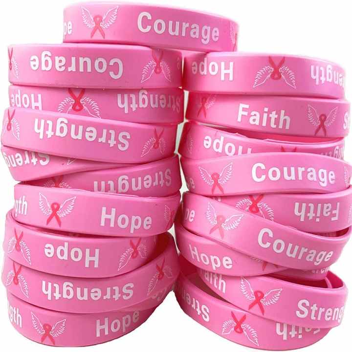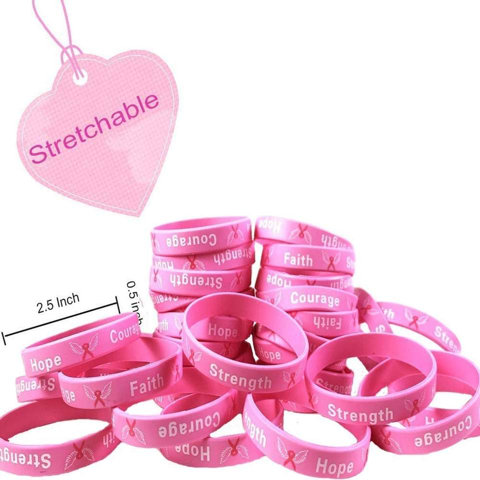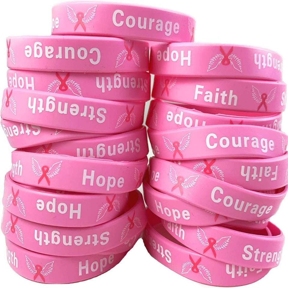 Braccialetti in Silicone Unisex Personalizzati di Alta Qualità con Nastro Rosa per la Consapevolezza sul Cancro al Seno, Simbolo di Speranza, Fede, Forza e Coraggio
