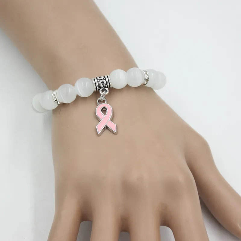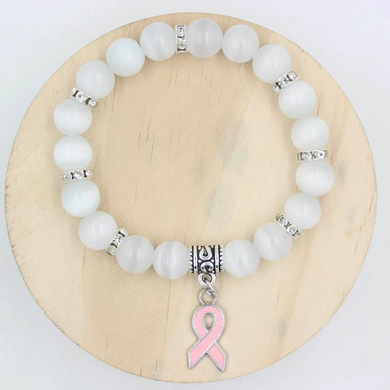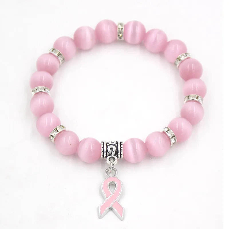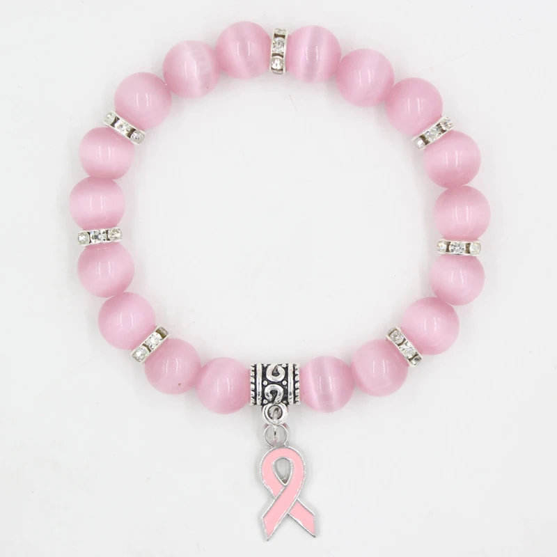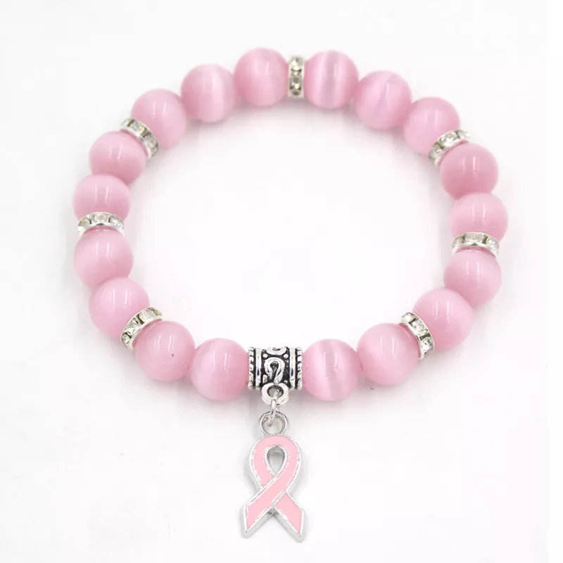 Breast Cancer Awareness Fine Charm Bracelet with Beads