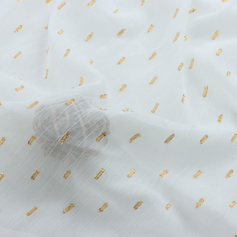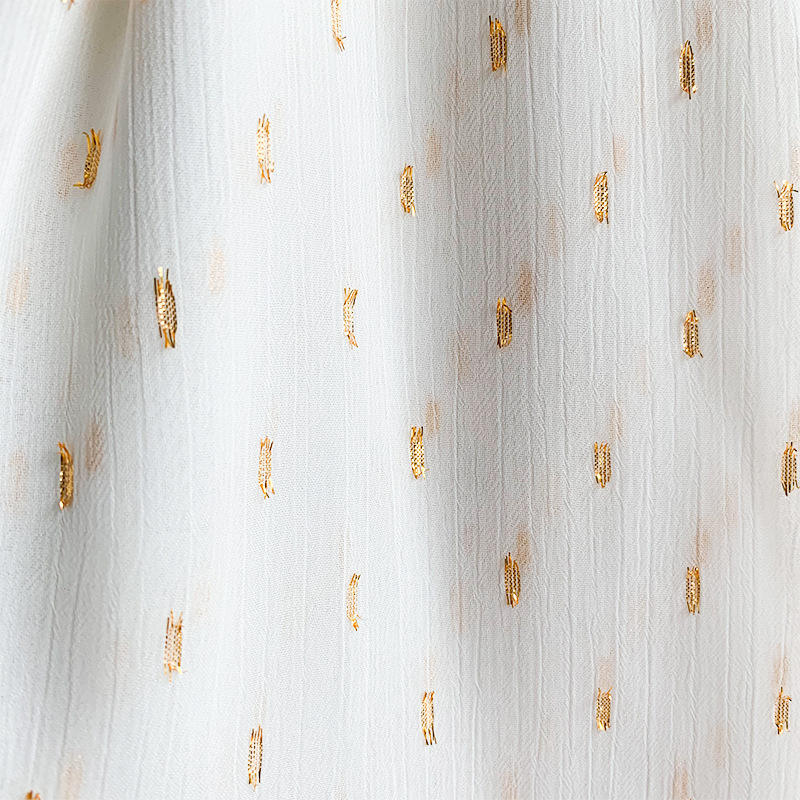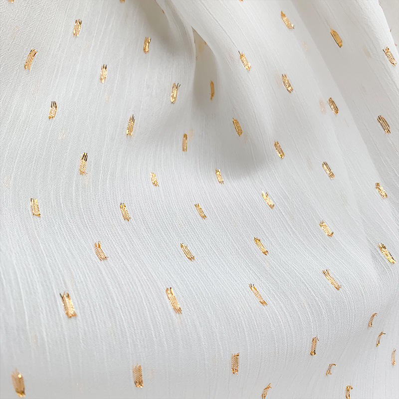 Tessuto in Chiffon Crepe 100% Poliestere Traspirante con Filo Dorato e Ritagli per Abbigliamento