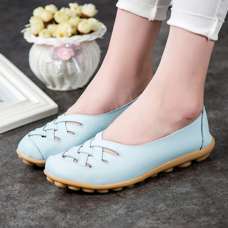 Fondo piatto traspirante cavo grandi dimensioni 43 44 fori scarpe da donna tacco piatto morbido donna mamma scarpe estive mocassini