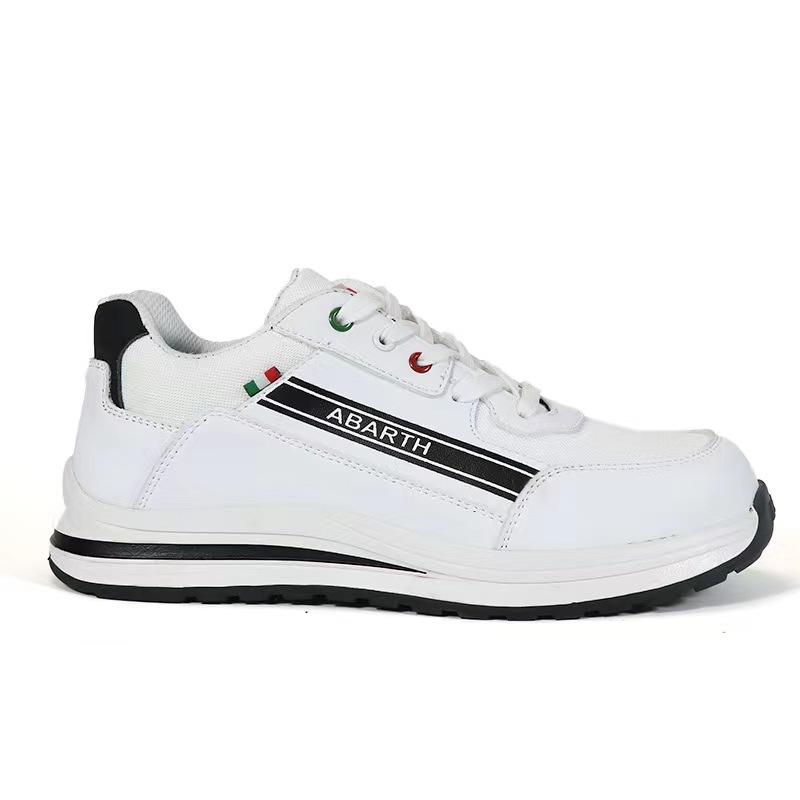 Scarpe Antinfortunistiche Traspiranti e Leggere con Punta in Acciaio, Calzature da Lavoro Antiscivolo in Pelle Bianca per Uomo