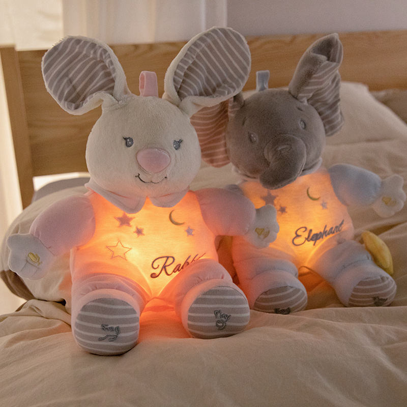Peluche Personalizzato Elefante Coniglio Respirante e Calmante con Musica, Canto e Registrazione, Orecchie Elettriche Mobili, Giocattoli Imbottiti per Bambini