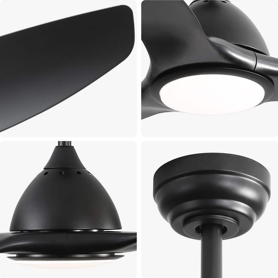 Bredoom ventilatore da soffitto a LED da 52 pollici con luce e telecomando a 6 velocità 3 lame in ABS nero per Patio