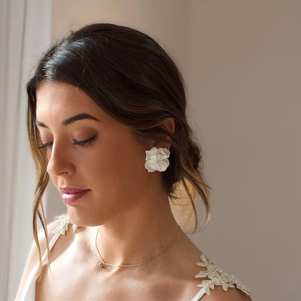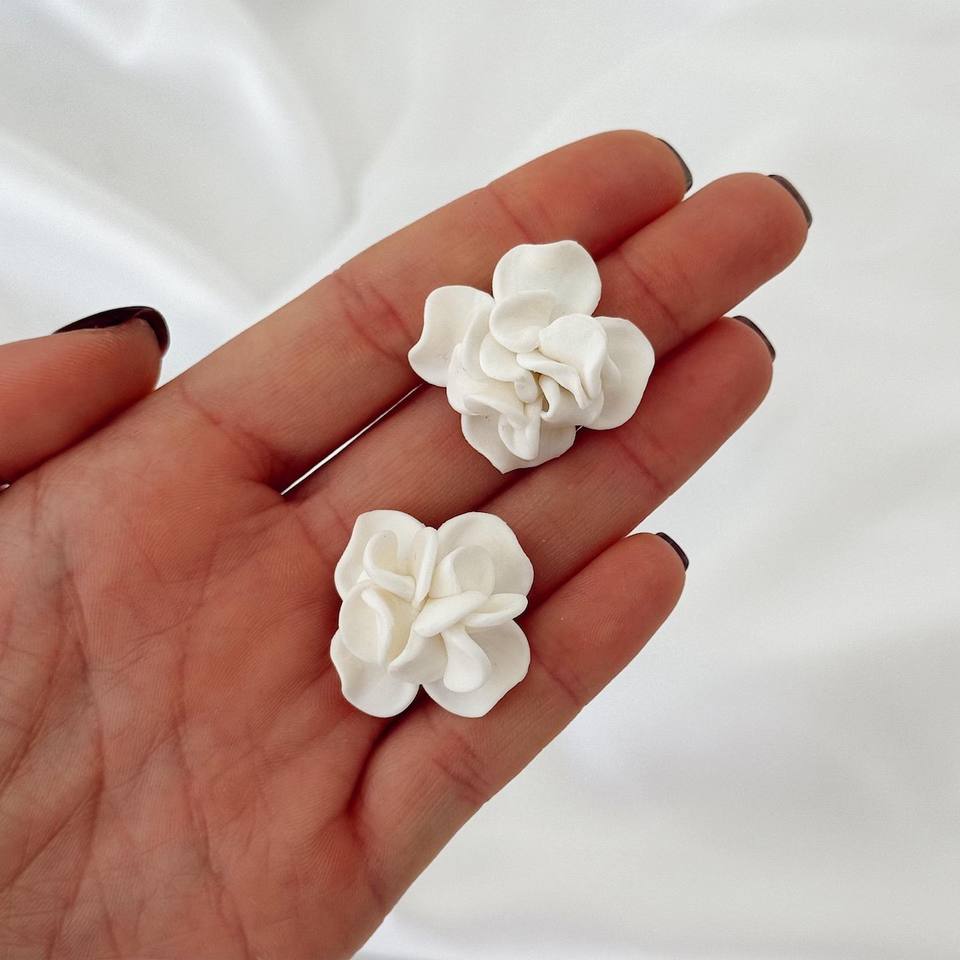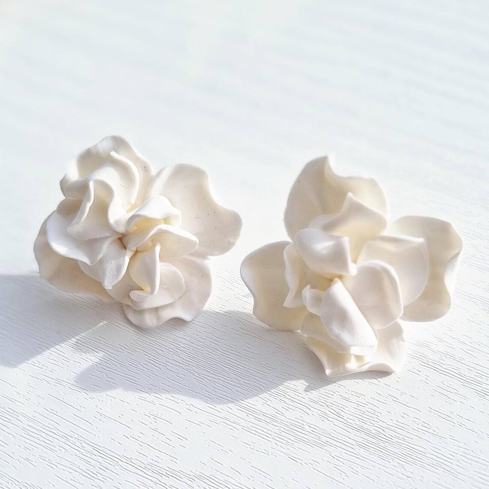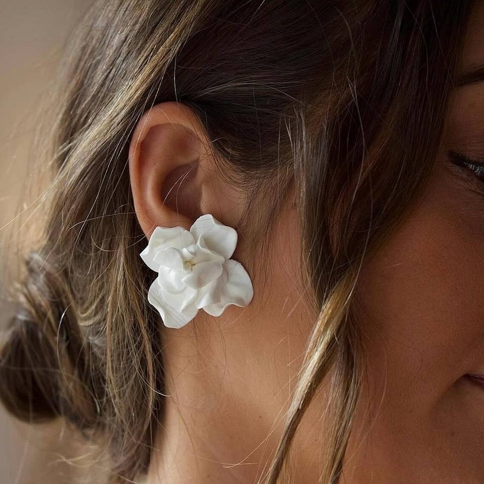 Orecchini da sposa con petali di porcellana bianca orecchini floreali in argilla polimerica a mano romantici gioielli da sposa
