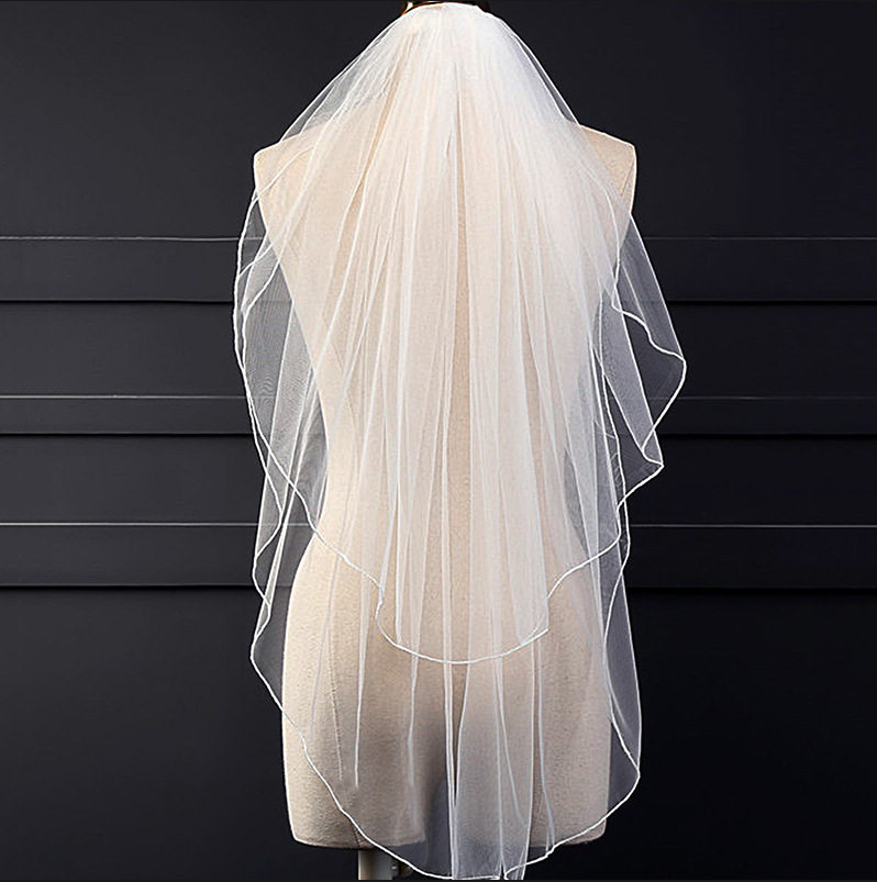 Bridal Veils Two Layer Veil With Metal Comb Soft Tulle 80~100cm White Pencil Edge Wedding Veils Veu De Noiva Curto