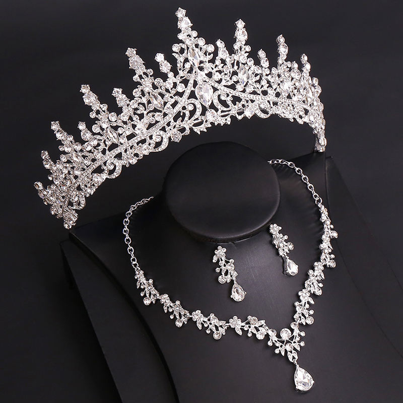 Corona sposa tre set corona nuziale copricapo collana orecchini moda di alta qualità per festa di temperamento accessori per banchetti