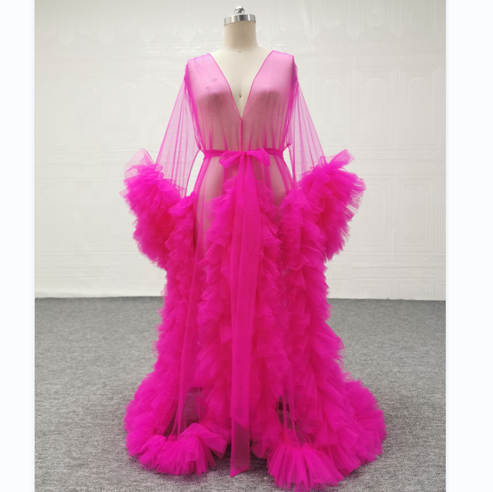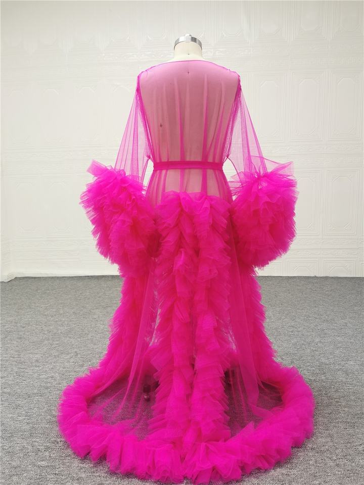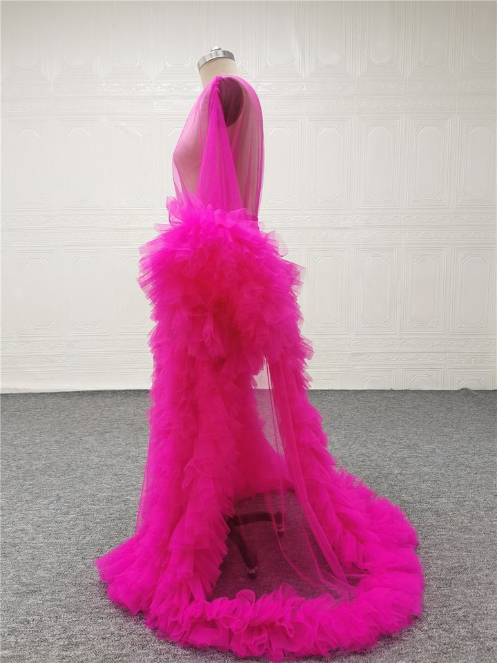 Abito da sposa lungo da gravidanza in Tulle arruffato abito da notte da sposa abito da sposa abito rosso rosa per servizio fotografico abito premaman