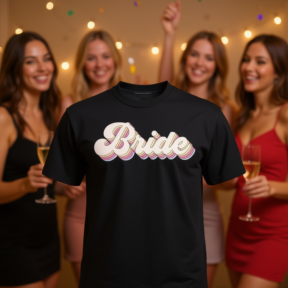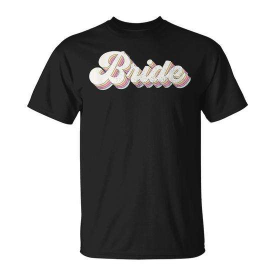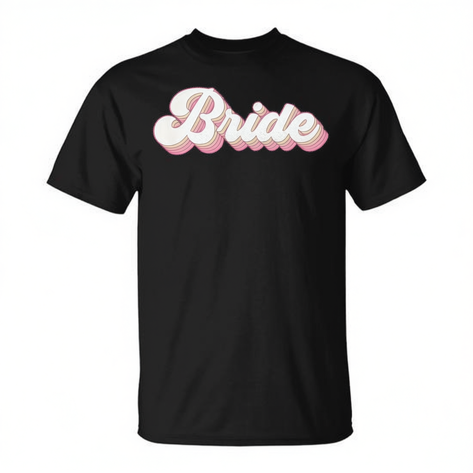 T-shirt da sposa retrò carina per addio al nubilato, nera, girocollo, manica corta