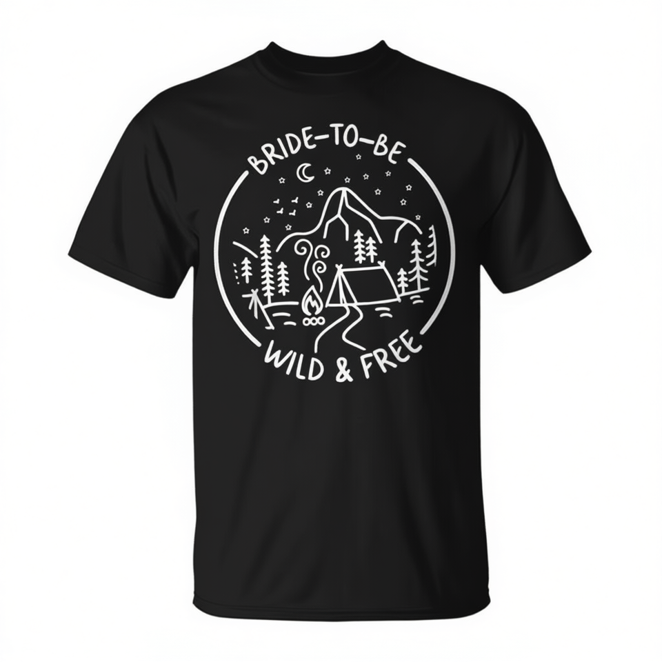 T-shirt da campeggio Bride To Be Wild And Free, nera, girocollo, unisex, per adulti, a maniche corte, regalo di nozze