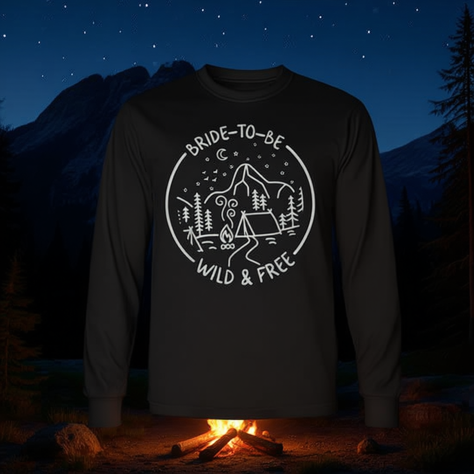 T-shirt a maniche lunghe Bride To Be Wild And Free, design da campeggio, girocollo da donna per adulti