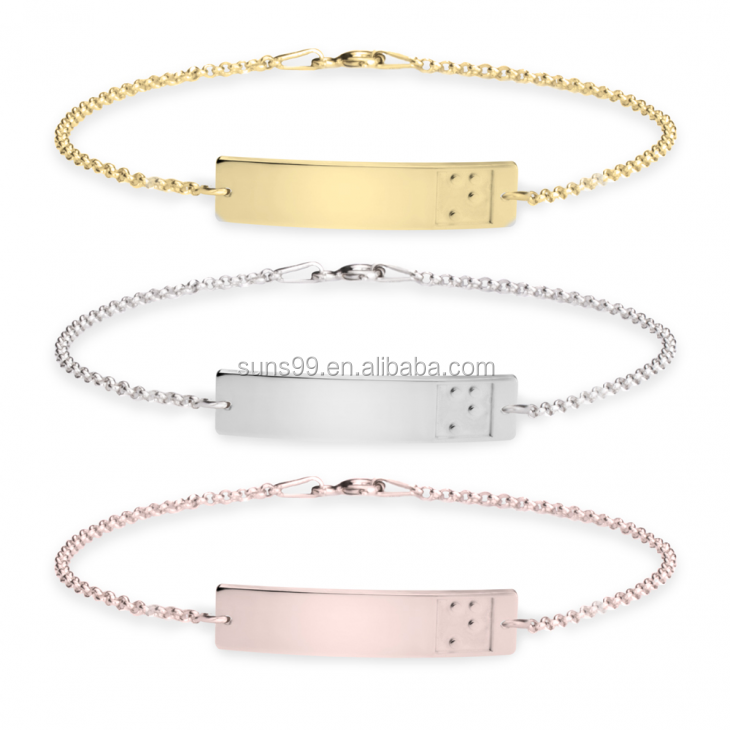 Bridesmaids Gift Wedding Date Bracelet Custom Name Stainless Steel Braille Alphabet Bar Bracelet