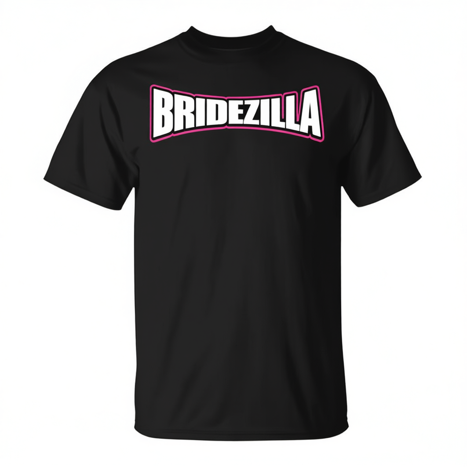 T-shirt Bridezilla nera con scollo rotondo e maniche corte, maglietta promozionale